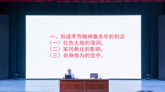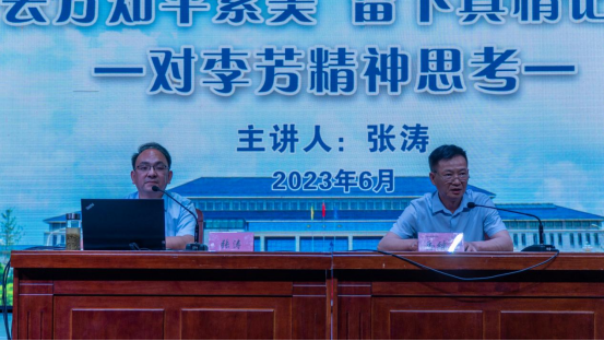 在与现场员工共同观看了纪念李芳老师的视频后,张涛开始了他的深情讲述。李芳老师那些生前不为人知的点点滴滴,经过张涛的回忆,深深地感动着现场的每一个人。他指出,形成李芳精神靠多年的积淀,是红色土地的浸润、家风教化的影响和自身修为的坚守;李芳精神体现在信念上的初心如一、平凡中的平和向上、自然里的泥土芬芳和生死间的勇于奉献。
