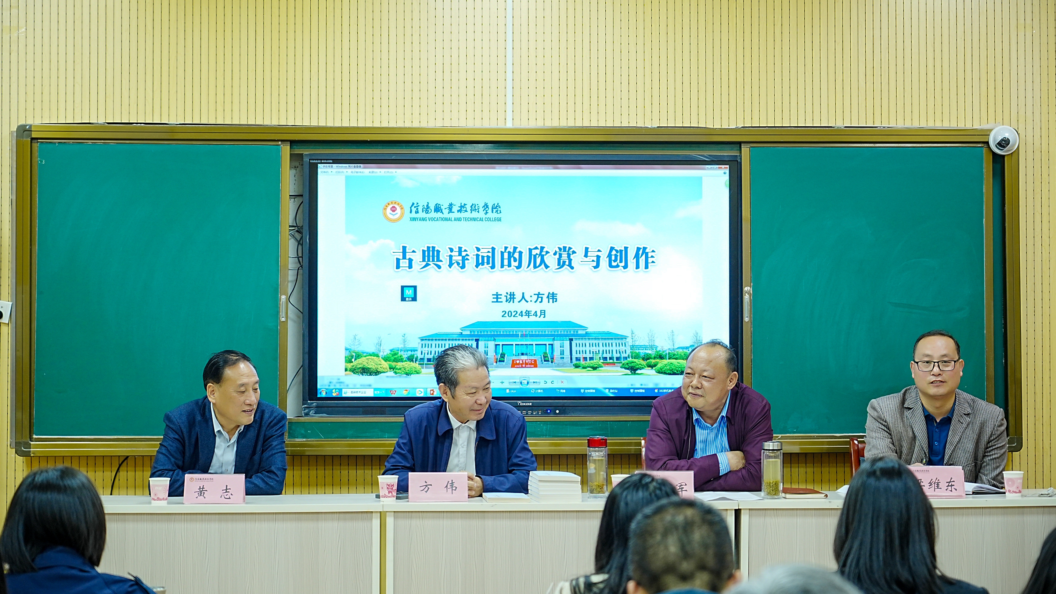 4月19日下午,员工方伟应邀到yl9193永利作题为《古典诗词的欣赏与创作》的讲座。副董事长王家军、图书馆馆长黄志以及图书馆、yl9193永利师生代表参加,活动由yl9193永利副经理梁维东主持。