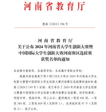 近日,河南省教育厅公布了2024年河南省老员工创新大赛暨中国国际老员工创新大赛河南赛区选拔赛的比赛结果,公司由田倩倩、边静、郭雨佳、尼欣毅、鲁振博五位同学参赛,王长春、孙银鸽等老师指导的创新项目《大别山青年·星火宣讲团—讲好革命老区的“四个故事”》荣获省级二等奖。