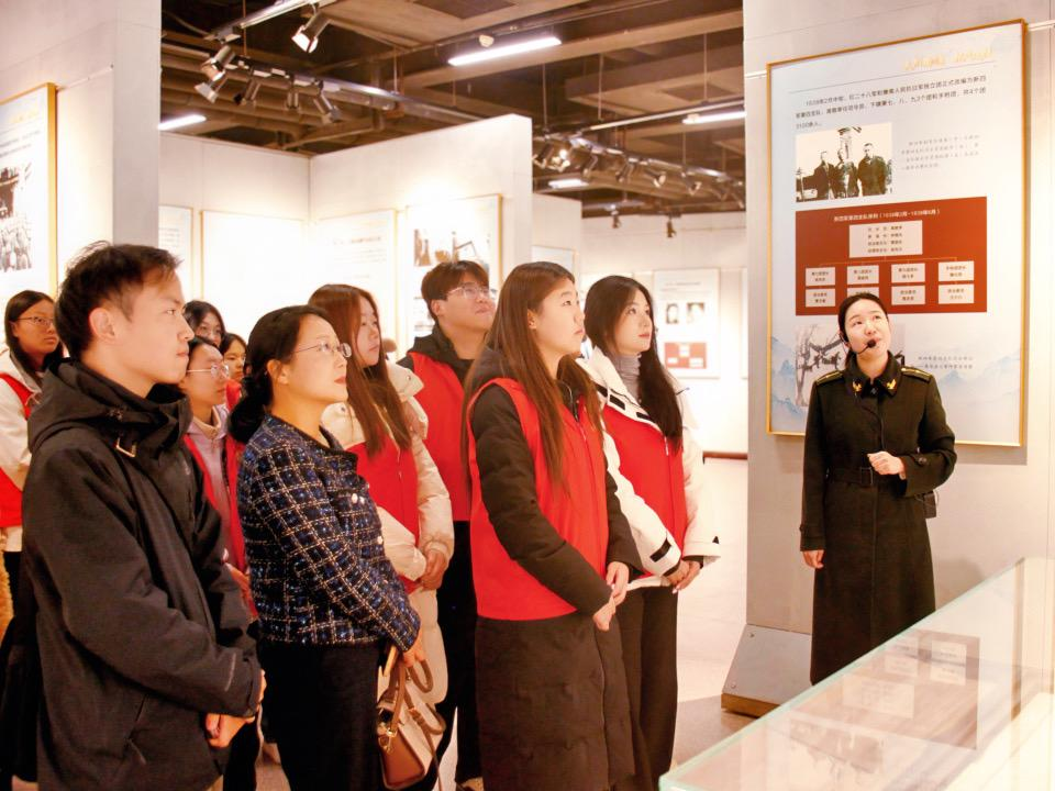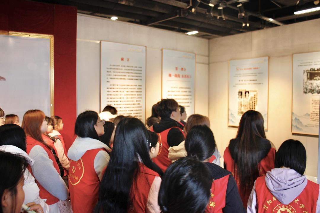展馆的每一张照片、每一件文物、每一段文字都刻着革命岁月的峥嵘,从抗日烽火中的浴血奋战,到解放全中国的决胜千里,党的百年奋斗史深深烙印在每一位同学的心中。参观过程中,同学们不时驻足凝视、低声交流,共同追思革命先辈的牺牲与奉献,携手践行中国的使命与担当。