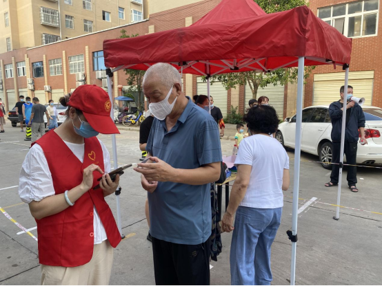 根据信阳市疫情防控指挥办公室的要求,7月15日将在市中心城区开展全员核酸检测。yl9193永利积极响应“支部联支部”的工作要求,迅速与结对社区永乐社区沟通联系,安排8名党员志愿者当天清早到永乐社区两个核酸采集点,协助完成全员核酸检测工作。