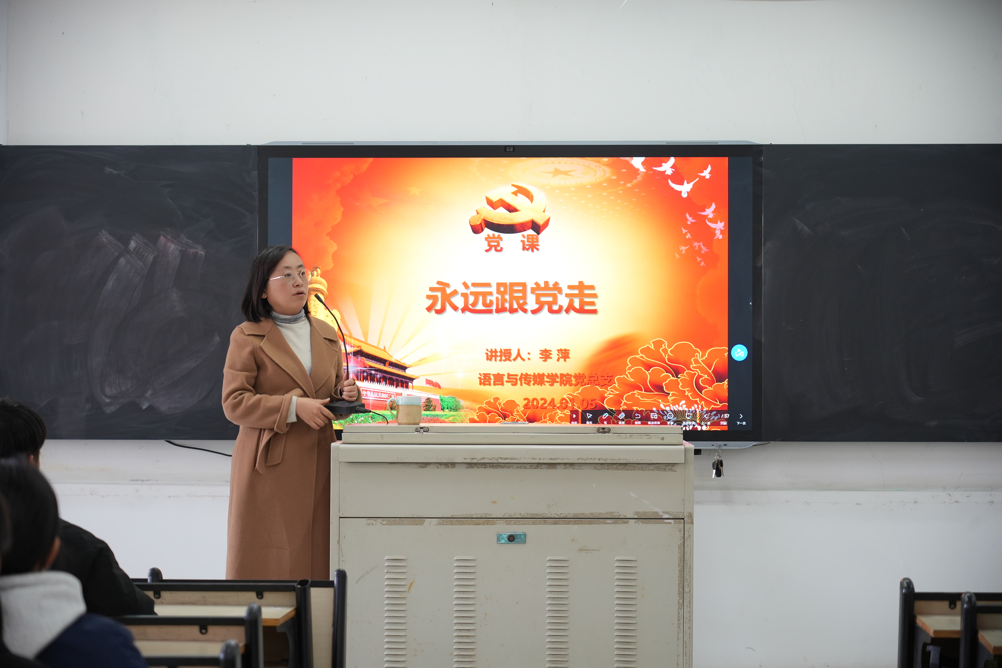 为深入推进学习贯彻习近平新时代中国特色社会主义思想主题教育,教育引导广大师生自觉用党的创新理论成果武装头脑、指导实践、推动工作,提升主题教育感染力、影响力,加强党员教育,让广大师生在听党课中了解国情、提高党性修养,2024年1月5日,公司党总支副书记、经理李萍在2018教室主持了“永远跟党走”主题党课,公司100余名预备党员和入党积极分子接受了此次党课教育。