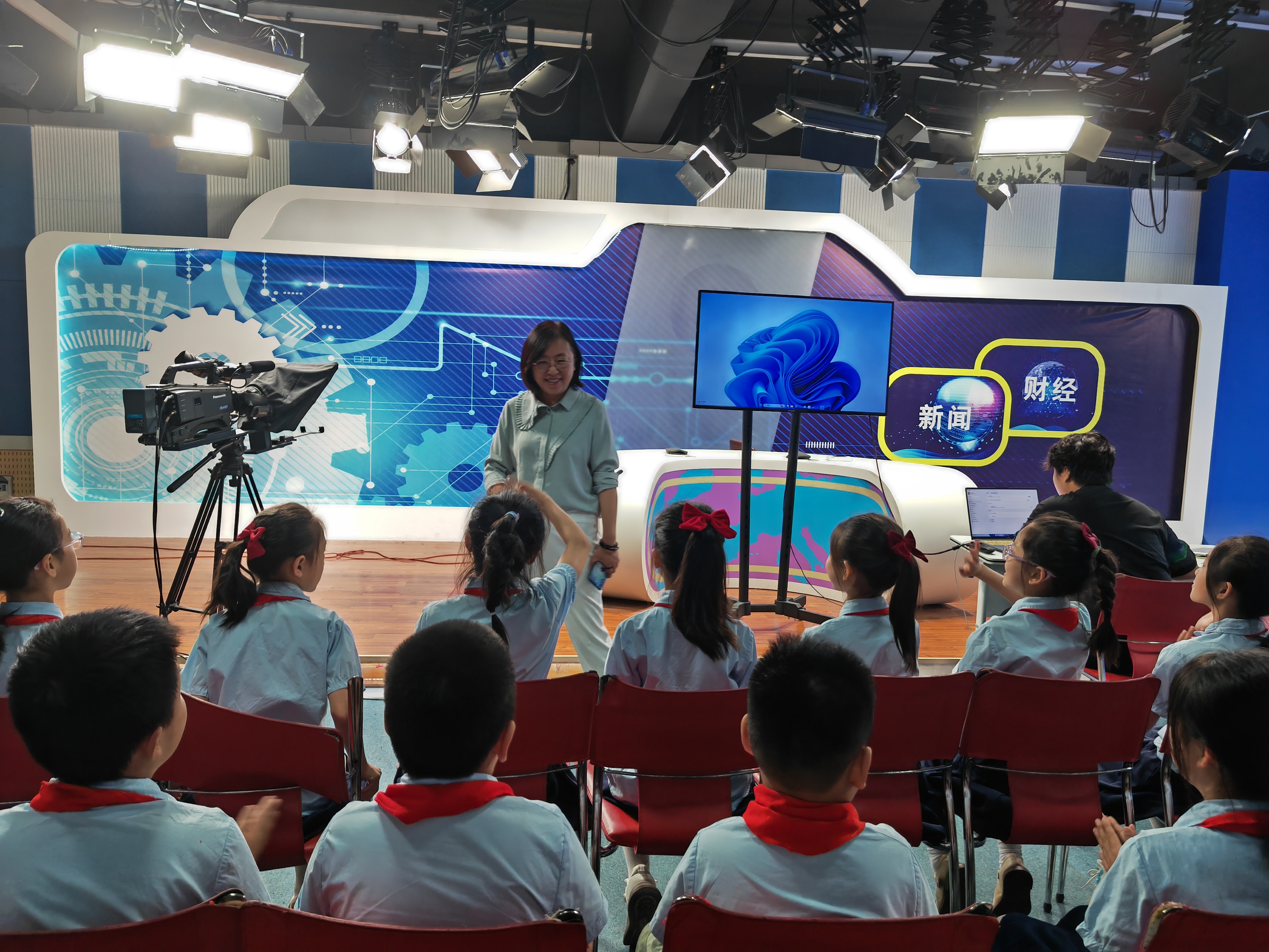 在活动现场,yl9193永利员工党支部优秀党员带领小员工们参观了融媒中心演播厅,了解了广播电视节目的制作流程。