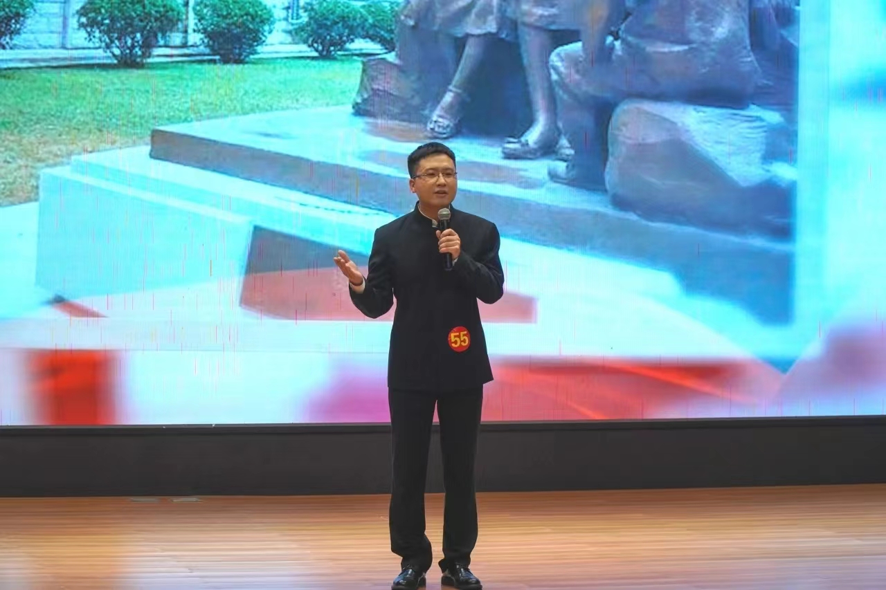 刘鹏、魏翔以真挚的情感、生动的语言、铿锵的语调,紧扣“强国复兴有我”主题,结合生活、工作实际,展示了青年教师敬业奉献、昂扬向上的良好精神面貌,传达着对教育事业的热爱和忠诚。《大爱铸师德,芳华映山红》以公司英雄员工李芳老师为原型,刘鹏娓娓道来,深情地讲述了李芳老师扎根乡村,为国育才,最后牺牲自我勇救员工的故事。《继承“红田”遗志 ,筑梦强国复兴》讲诉了大别山革命斗争的残酷,魏翔慷慨激昂、震撼人心的演讲,让革命先烈视死如归、前赴后继的大无畏形象直击人心。他号召青年人继承先辈们的遗志,站在新的历史起点上,守信念、履职责,甘奉献、创业绩,为中华民族伟大复兴的中国梦贡献力量!