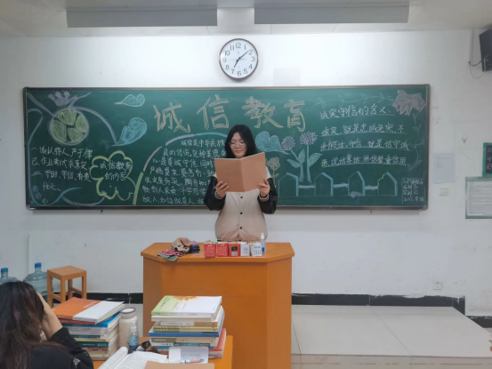 班会伊始,班委向同学们解释诚信的含义,即待人处事真诚、老实、讲信誉、言必行、行必果。通过对含义的解释使其理解“诚信”对于员工自身发展和为人处世的重要意义。各班以“诚信作业”为切入点,让同学们踊跃发言,寻找自身在诚信方面的缺失,然后通过组织讲诚信故事、集体宣誓等多种方式,使诚信的种子扎根于每一位员工心中。最后同学们还一起回顾了学习的主要内容,巩固学习成果。会后,同学们将理论知识精读细研运用于实际。