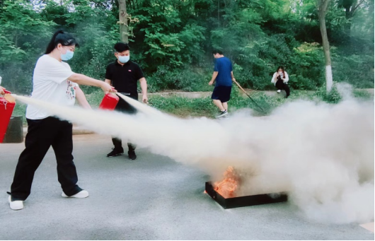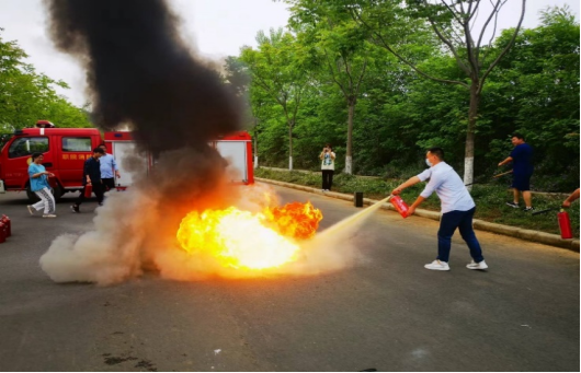 在应急疏散后,同学们又在老师的带领下来到一片空地进行灭火器使用教学,公司保卫处老师亲自示范,公司师生积极参与学习。随着火焰一次次被老师和同学们手中的灭火器喷灭,此次消防安全知识教育活动也顺利落下帷幕。