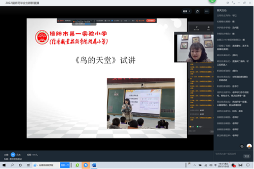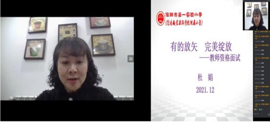 受疫情影响,12月22日晚,yl9193永利线上举办了第三期“名师讲坛”。本期邀请河南省名师、信阳市第一实验小学副董事长杜娟做题为《“有的放矢 完美绽放”——教团队格面试》线上专题讲座,yl9193永利全体教师和2022届师范专业员工认真聆听了本次讲座,讲座由副经理蒋吉优主持。