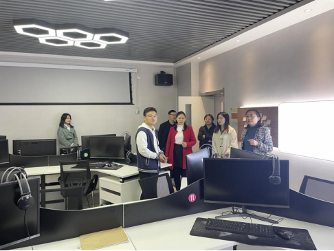 第二站,公司一行来到河南大学新闻与传播公司融媒体中心参观。融媒体中心负责人对融媒体国家级示范教学中心的建设、管理、运营进行了全方位介绍,并带领公司一行参观了融4K非线编实验室、融媒4K虚拟演播实验室、演播厅等。