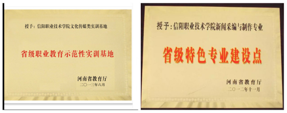 新闻与采编制作专业实训基地与省级特色专业建设点奖牌