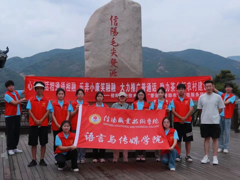 实践小组随后来到浉河港镇文新茶村,志愿者王浩在这里做起了助农直播。一路上,他一边向直播间的网友们讲解信阳的风土人情、自然风光,一边做起了信阳毛尖的推广者。“淮南茶信阳第一、信阳毛尖的品牌价值位列中国十大名茶第三名,欢迎大家来信阳做客,品信阳毛尖、吃信阳菜、赏信阳美景”,王浩幽默风趣的语言、细致专业的讲解,令直播间热闹非凡,直播人数一度突破300人。在茶村休息区,志愿者们向游客们朗诵了《我有祖国,我有母语》,志愿者们标准流利的普通话、声情并茂的朗诵,引来许多游客驻足欣赏,并为她们精彩的表演拍手叫好。